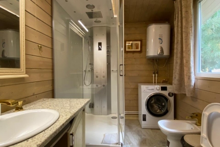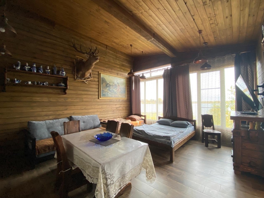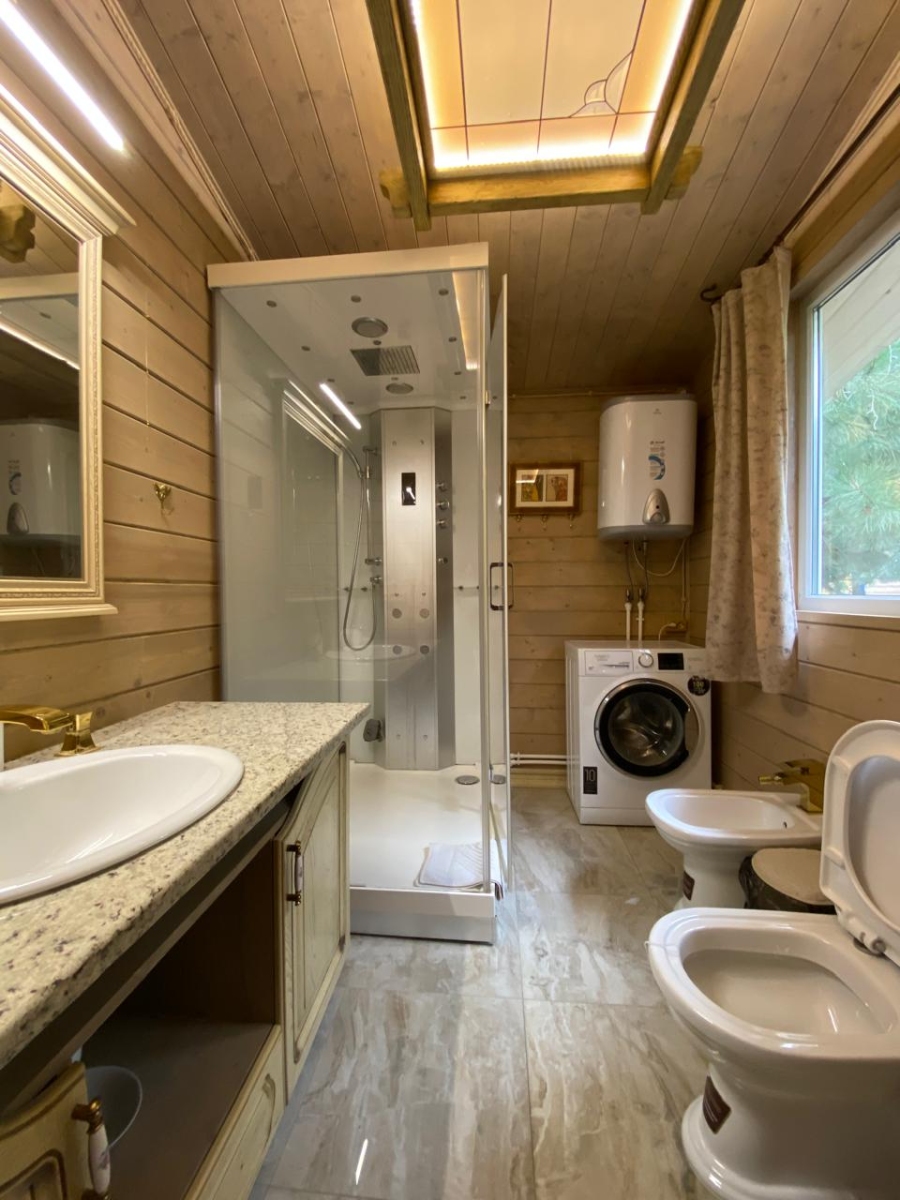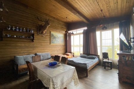 Гостиная совмещенная с кухней, холодильник, микроволновая печь, электропечь, эл. чайник, посуда, сплит-система, телевизор, 2 спальни, санузел, душевая, парилка, закрытый бассейн, Wi-Fi, выход к берегу Волги.